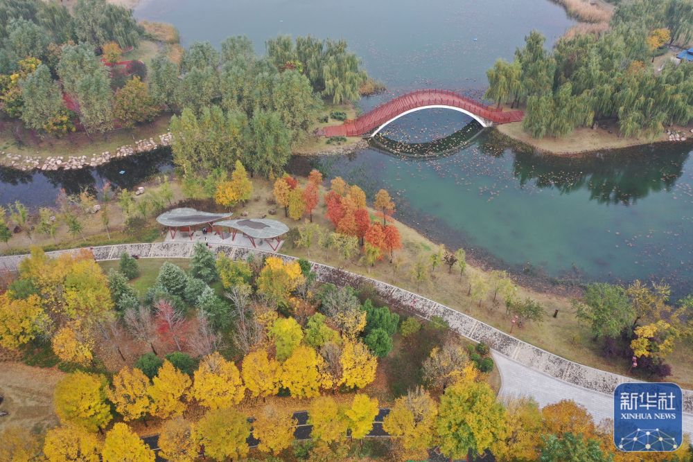 11月14日在河南省焦作市温县子夏公园拍摄的景色(无人机照片)。新华社发(徐宏星摄)