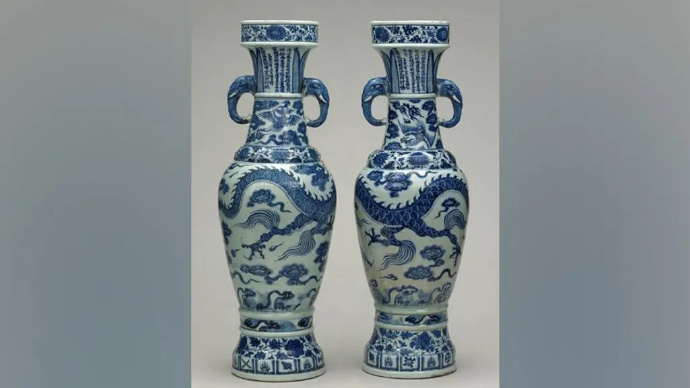 元至正十一年款青花云龙纹象耳瓶,图片来源:外媒