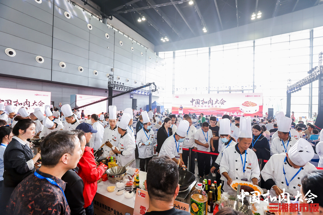宝塔扣肉、家乡面子扣肉、莲蓬扣肉……作为此次大会的重头戏,乡宴名菜争霸赛由湖南省 19 支来自各市州的乡宴名厨队伍与 5 支省外队伍(宁夏、江西、湖北、广东、四川)同台竞技,以扣肉为代表的地方乡宴名菜及特色菜一齐亮相,色香味俱全的扣肉菜品让观展宾客大快朵颐。