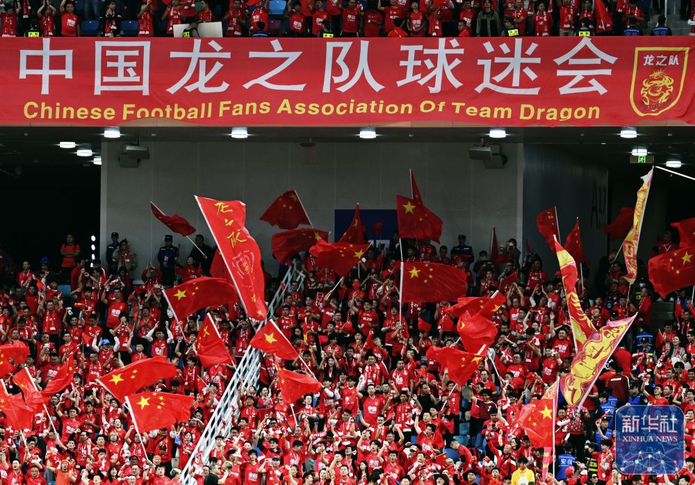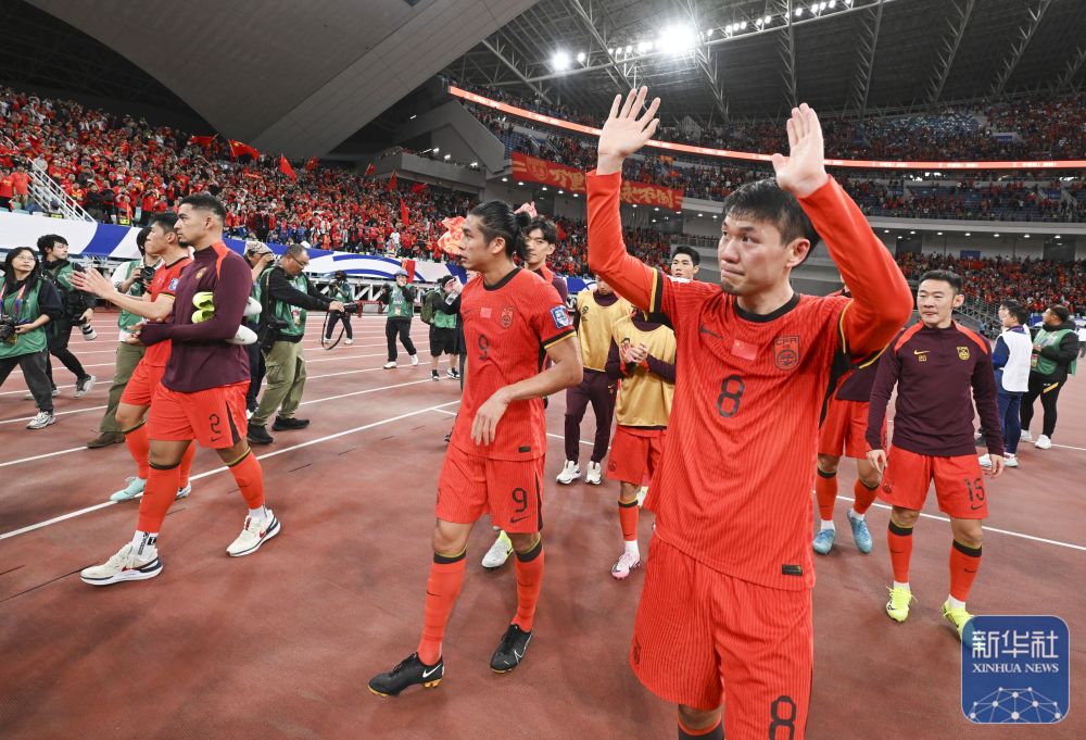 ↑中国队球员在比赛后向球迷致意。新华社记者 姜克红 摄
