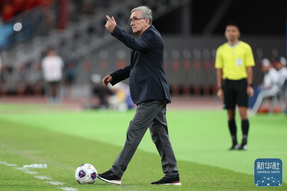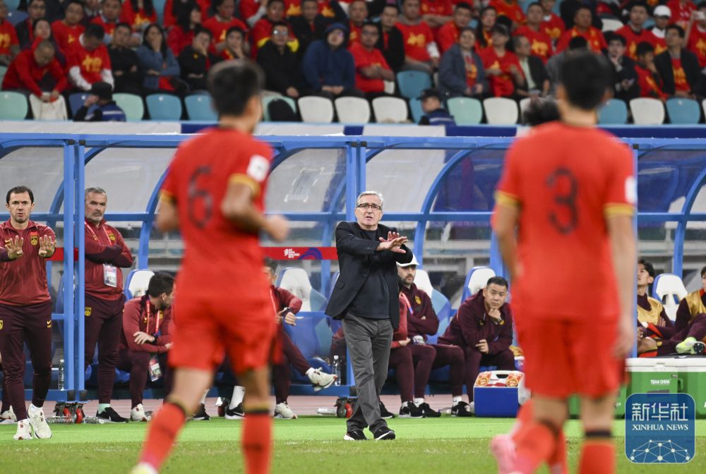 ↑中国队主教练伊万科维奇在场边指挥。新华社记者 曹灿 摄