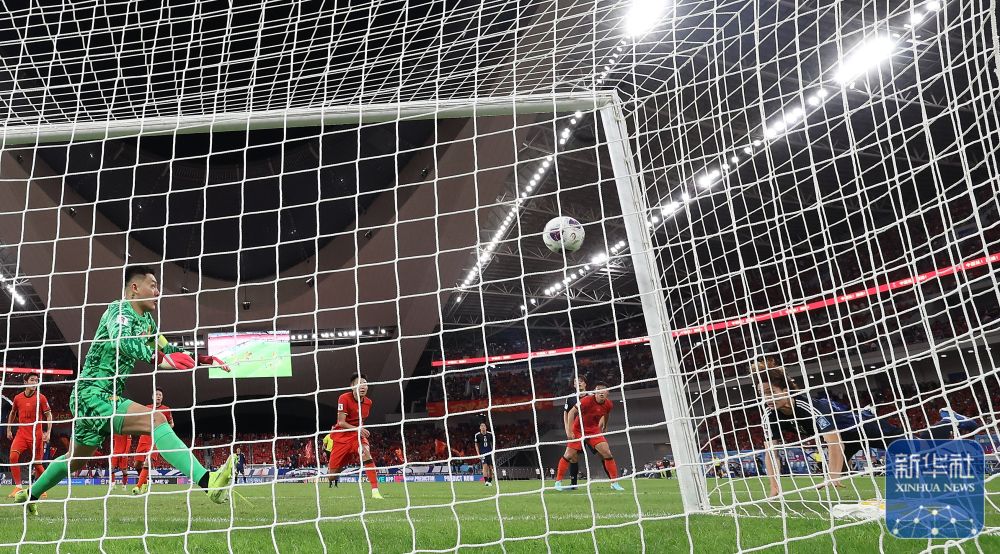 ↑中国队守门员王大雷在比赛中。新华社记者 魏培全 摄