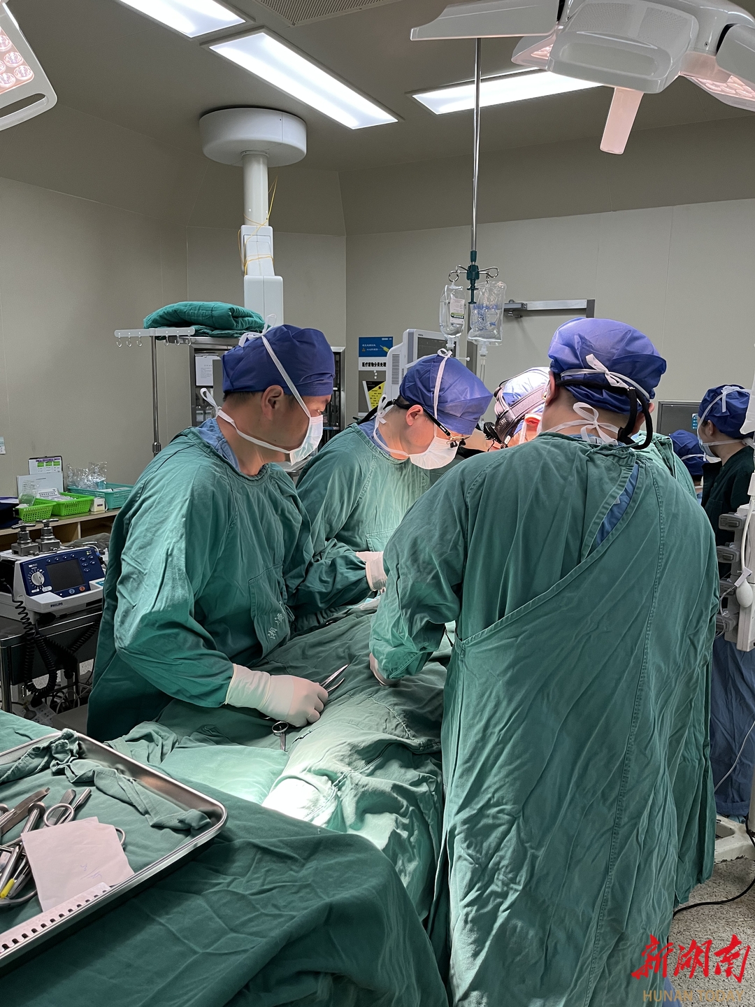 湘潭市中心医院心胸外科副主任、主任医师吴坤(左二)在手术中