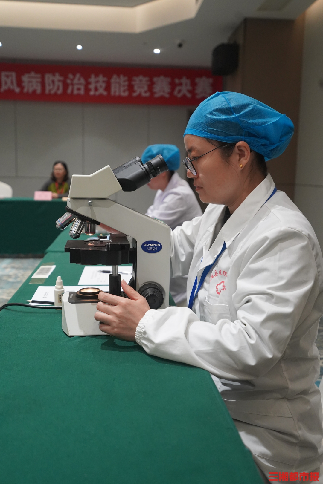 三湘都市报·新湖南客户端11月21日讯(文/视频 全媒体记者 高煜棋)为病人查体、在显微镜前进行细胞检测……湖南省首届麻风病防治技能竞赛把诊室、实验室搬到了考场,真人当“考卷”,展示了一场别开生面的竞赛。11月21日,在全体参赛者为获奖医生个人、团体爆发的阵阵掌声中,湖南省首届麻风病防治技能竞赛结束。