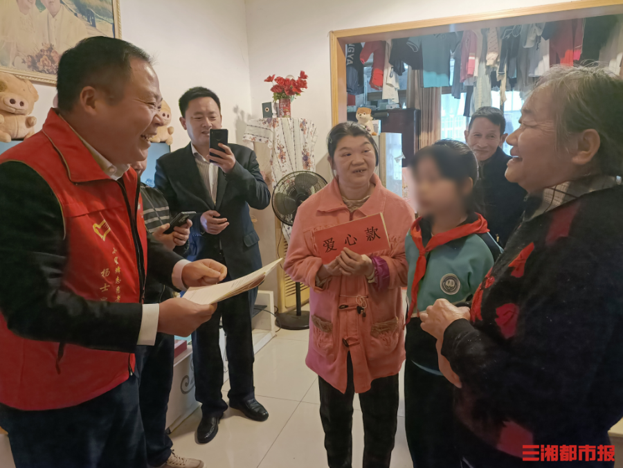 三湘都市报·新湖南客户端11月21日讯(文/视频 全媒体记者 杨昱)“这份资助,解了我们家的燃眉之急。我会教育孩子学会感恩,将来做一个对社会有用的人。”11月21日,长沙市天心区委社会工作部、天心区小蜜蜂志愿者协会的志愿者,带着路女士夫妇的委托,来到暮云街道高云村的邹翠家,送上爱心助学金和问候。接过爱心助学金,邹翠连连表达谢意。