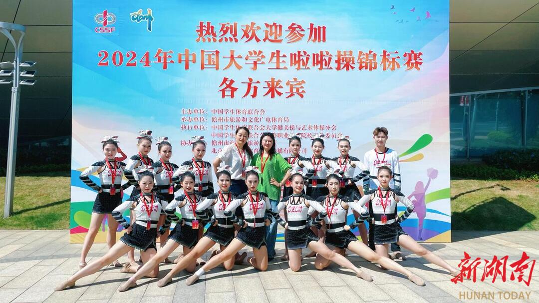湖南日报11月22日讯(通讯员 杨乐 张文哲 张辛蕤)11月14日至19日,由中国学生体育联合会主办的2024年中国大学生啦啦操锦标赛在海南省儋州市举行。湖南大众传媒职业技术学院啦啦操队荣获乙组(高职高专组)团体第二名和单项奖两金两银的好成绩,体育课教学部张丽莎老师荣获优秀教练员称号。