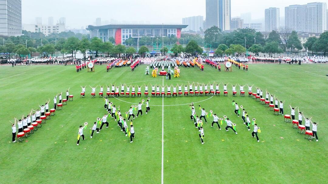 开幕式上,体育学院和音乐学院师生带来了精彩的节目表演。锣鼓表演《欢庆锣鼓》率先登场,鼓乐喧天,瞬间点燃运动会现场激情;舞龙表演《龙的传人》气势磅礴,振奋人心,激发了师生的自信自豪;啦啦操《青春湘南》整齐划一,动感明快,尽显湘南学子蓬勃朝气;舞蹈《吾馨舞悦》欢快明丽,展现了新时代青年奋发向上的精神风貌。