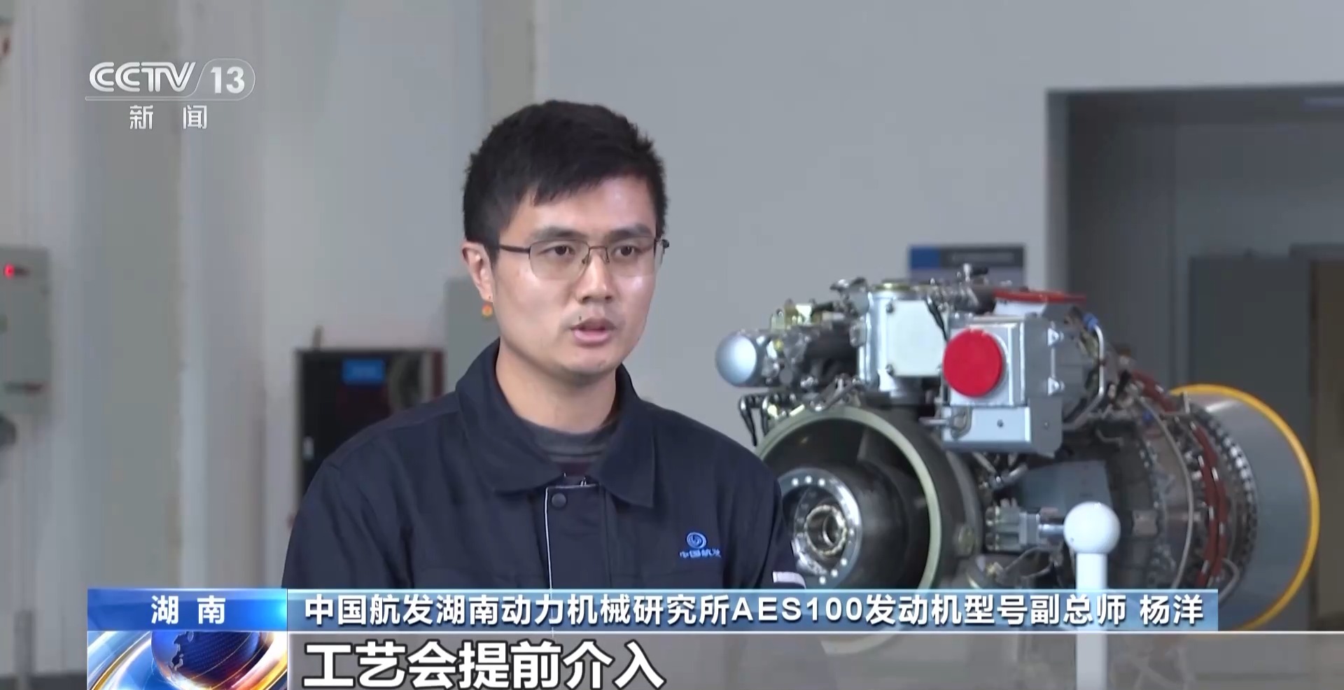 中国航发湖南动力机械研究所AES100发动机型号副总师 杨洋:我们发动机图纸设计的时候,工艺会提前介入,然后把我们零件的工艺性通过一些优化,既保证设计要求,又能满足我们可加工性。另一方面,我们在前瞻谋划上付出了很多,比如整机脱落包容试验,试验本身特别短,但是我们提前6年已经开始谋划这个试验。所以才能一次成功地完成高风险试验,也为我们研制周期的缩短提供了很大的支持。