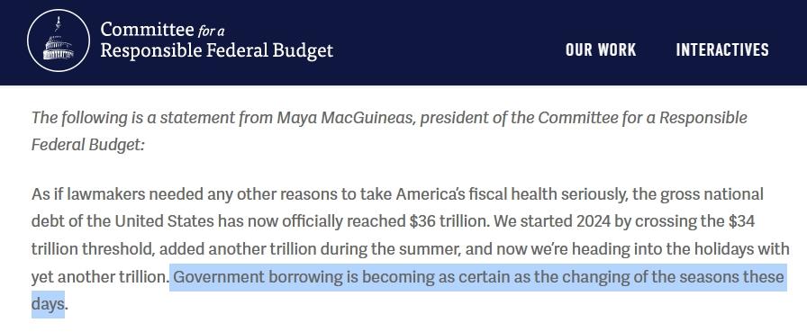 联邦预算问责委员会主席马娅·麦吉尼亚斯在发言稿中直言:“如今,美国政府借款正变得像季节的变化一样规律而确定。”