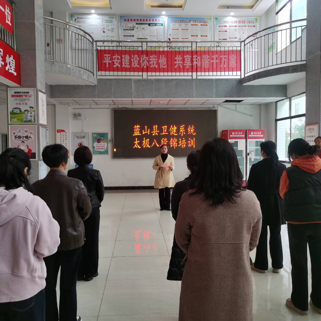 湖南日报·新湖南客户端11月25日讯(通讯员 邓瑞宏)11月25日,蓝山县卫健系统太极八段锦培训班正式开班。开班仪式上,该县太极气功协会老师到场示范教学。