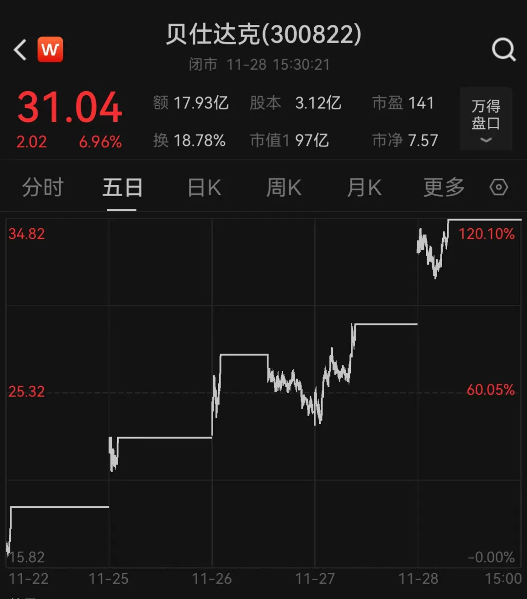贝仕达克(300822.SZ)最近的市场关注度很高,此已有6天4板。