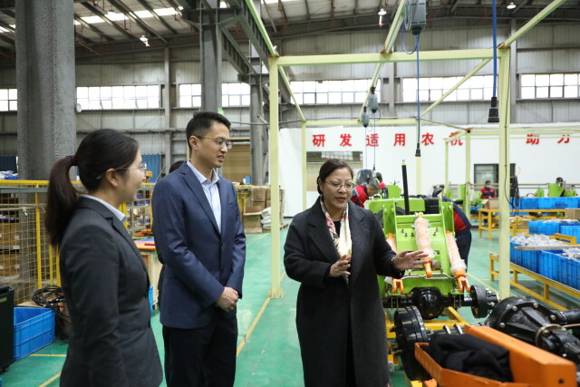(农行永州道县支行客户经理实地考察农机装备公司生产情况。银行供图)