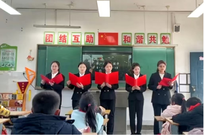 王琼等5位同学用中、英、日、韩、西五种语言朗诵了《青春中国》,这不仅饱含青年学子对祖国的炽热深情,更为孩子们播撒下“精通语言艺术,讲好中国故事”的希望种子。