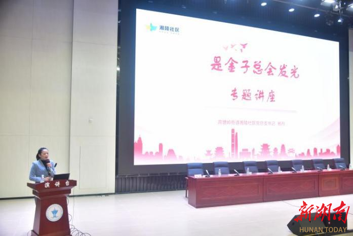 杨丹以望职学姐的身份,深情回顾了自己在母校的求学时光,并以《是金子总会发光》为主题,讲述了自己的学习体会以及毕业后踏上社区工作、当选社区党总支书记的历程。此外,她还分享了社区工作的感悟与经验,出色的工作能力和职业素养为同学们树立了积极向上的榜样。