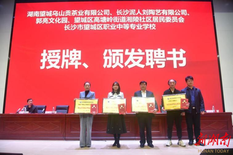 新湖南客户端12月2日讯(通讯员 朱燕 胡炜)为有效促进思政“小课堂”与社会“大课堂”的有机结合,近日,望城职业中专学校与郭亮文化园、湖南望城乌山贡茶业有限公司、长沙泥人刘陶艺有限公司、望城区高塘岭街道湘陵社区共建思想政治教育实践基地成立大会在望城职业中专举行。