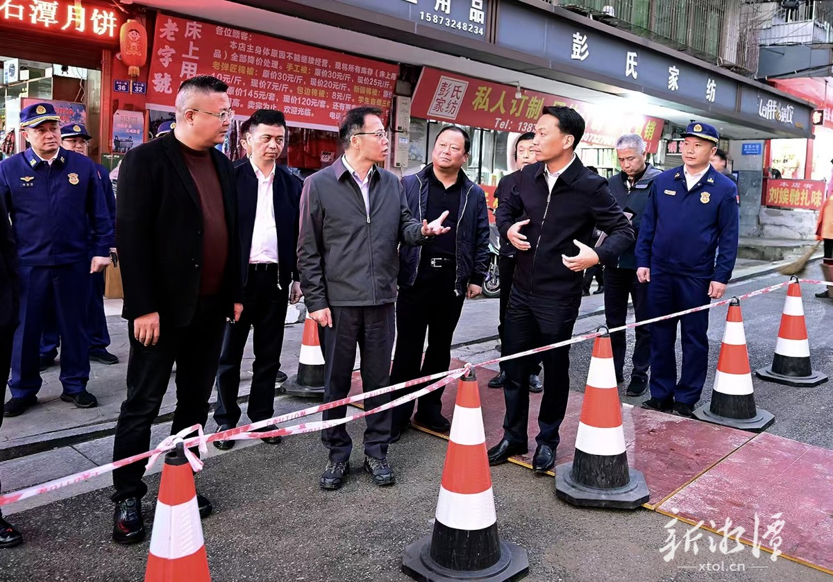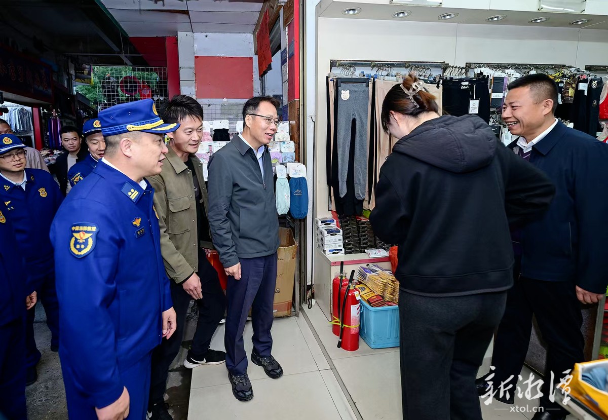 (胡贺波在易俗河大市场督导消防安全工作。)