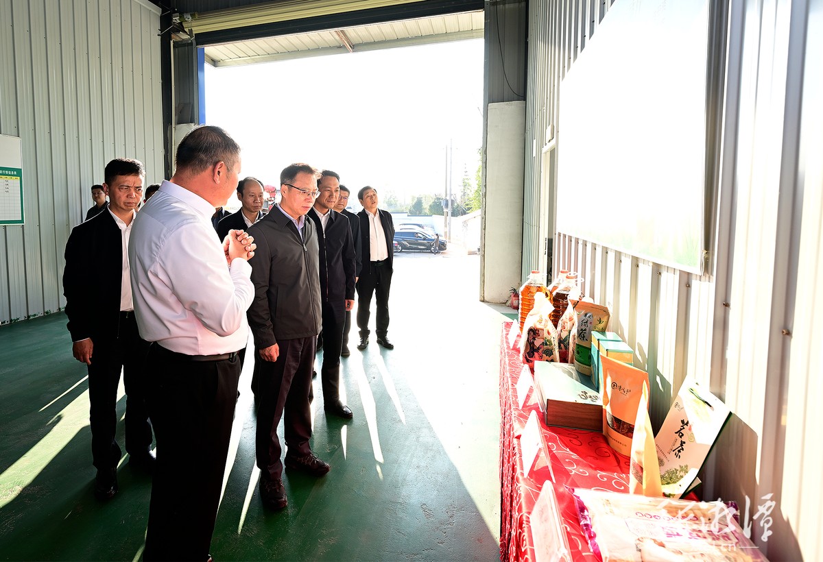 (胡贺波在云联生态农业有限公司调研企业生产经营、村级集体经济发展等情况。)