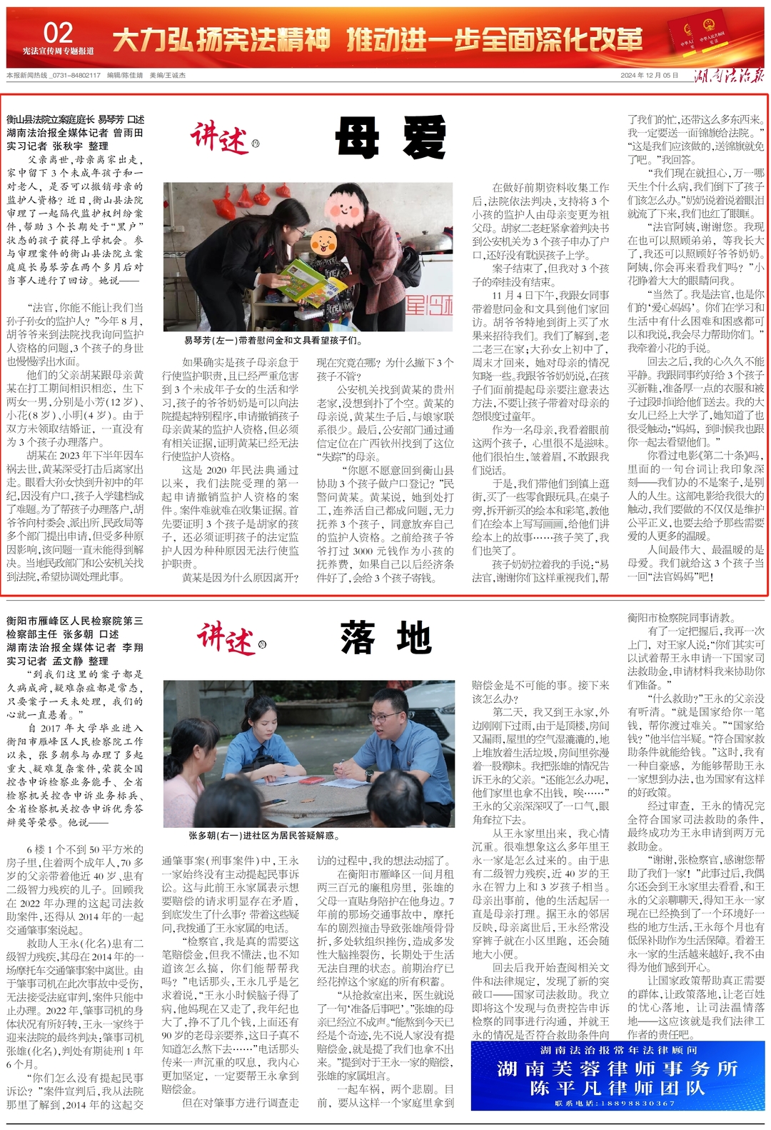 父亲离世,母亲离家出走,家中留下3个未成年孩子和一对老人,是否可以撤销母亲的监护人资格?近日,衡山县法院审理了一起隔代监护权纠纷案件,帮助3个长期处于“黑户”状态的孩子获得上学机会。参与审理案件的衡山县法院立案庭庭长易琴芳在两个多月后对当事人进行了回访。她说——