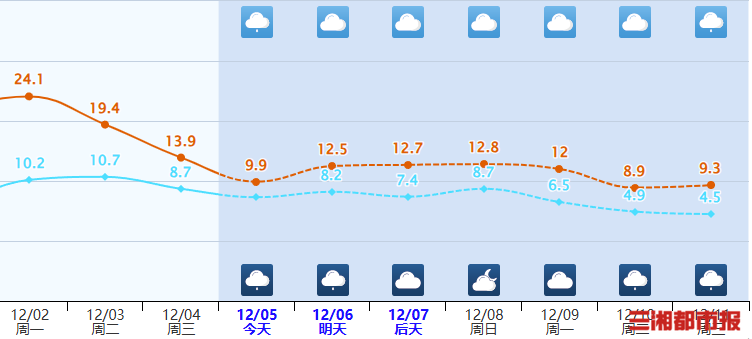 而据长沙市气象台预计,未来一周都是“冷空气”的主场。在多云、小雨和阴天的配合下,最高温度将在10日至12日,随着冷空气补充南下而降至10℃以下。
