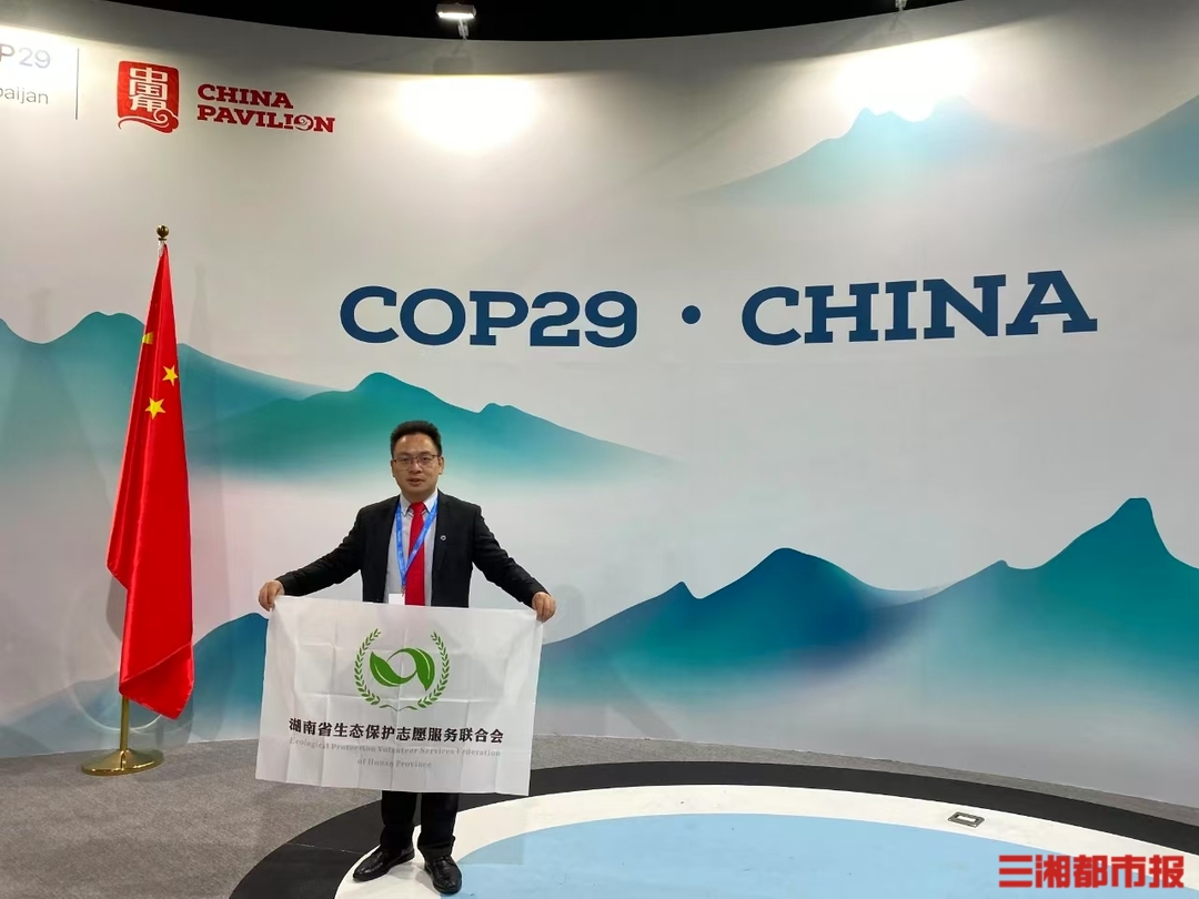 三湘都市报·新湖南客户端12月5日讯(全媒体记者 叶竹)不久前,联合国气候变化大会第二十九次缔约方大会(COP29)举行,来自中国湖南的何建军也受邀前往阿塞拜疆首都巴库参会。会上,作为省生态保护志愿服务联合会常务副会长,他向全世界发布湖南民间环保组织对于应对世界气候变化曾经提供和将要提供的解决方案。