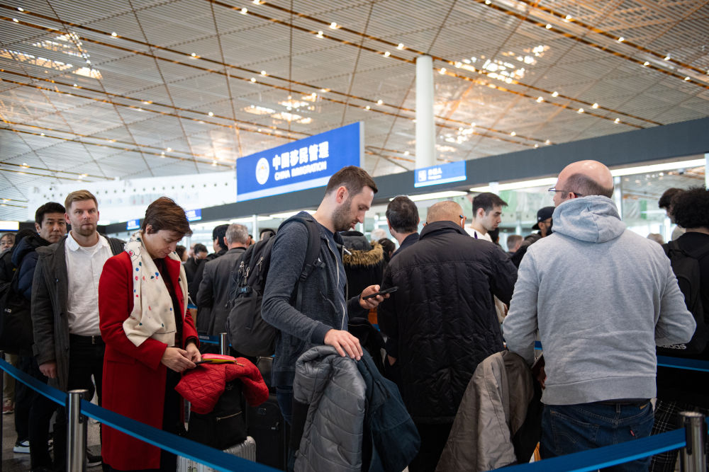 12月4日,外国游客在北京首都机场三号航站楼边检入境现场候检。新华社记者 陈钟昊 摄