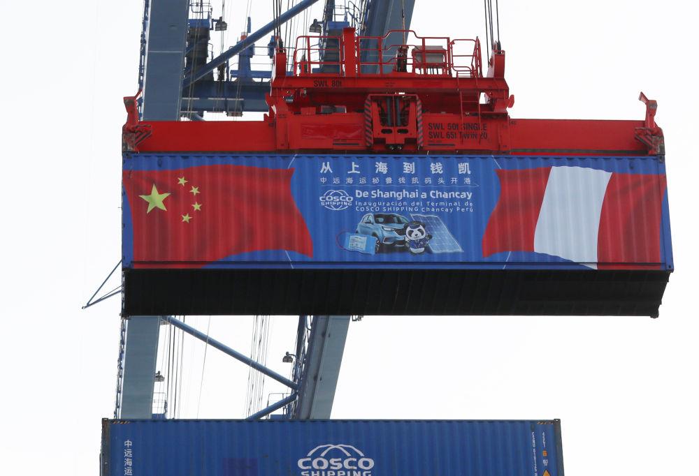 △2024年11月14日,在秘鲁首都利马以北的钱凯港,岸边智能化设备吊装集装箱。