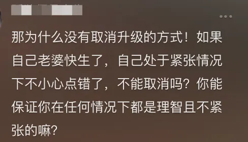 视频评论区,不少网友吐槽系统升级不能中途取消不合理:“我先升,你再生?”