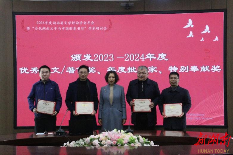 颁奖环节上,年会评选出了“优秀论文和优秀著作”“年度批评家”“特别贡献奖”“青年批评家奖”“新媒介评论奖”等优秀科研成果奖共33项,激励了众多学者为推动湖南文学和湖南文学评论事业高质量发展作出更大贡献。