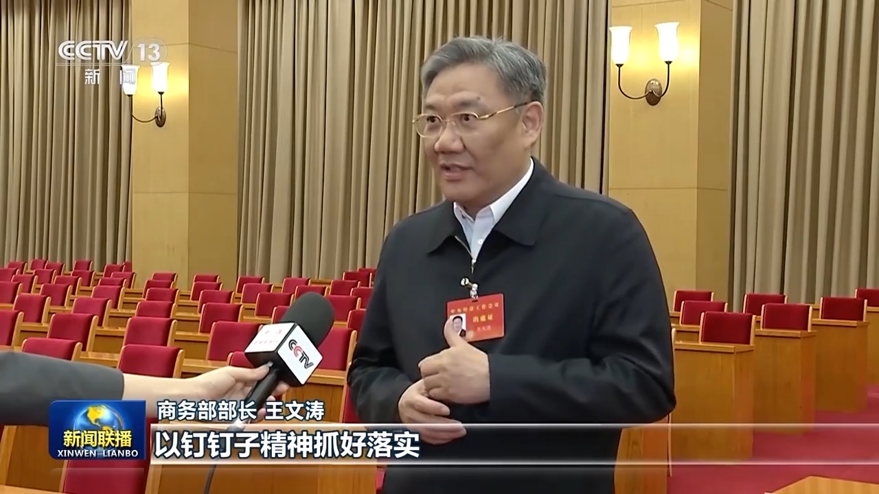 商务部部长 王文涛:总书记在讲话当中,多次提到了跟商务工作相关的一些内容。比如说扩消费、稳外资、稳外贸。商务部将结合总书记的讲话,以钉钉子精神抓好落实。我们要把扩消费作为明年经济增长的一个支撑。我们将通过扩大开放,来促进服务贸易的增长,来稳外资。我相信通过这些,我们对明年的整个经济工作,特别是商务工作还是很有信心。