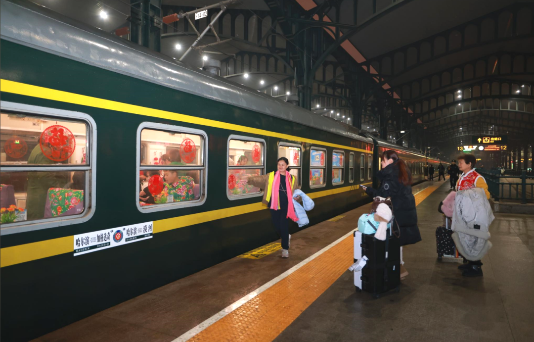 随着冰雪旅游的持续升温,越来越多的外地旅客乘坐这趟列车去漠河“找北”。每到旺季,这趟列车几乎趟趟爆满,上座率达100%。