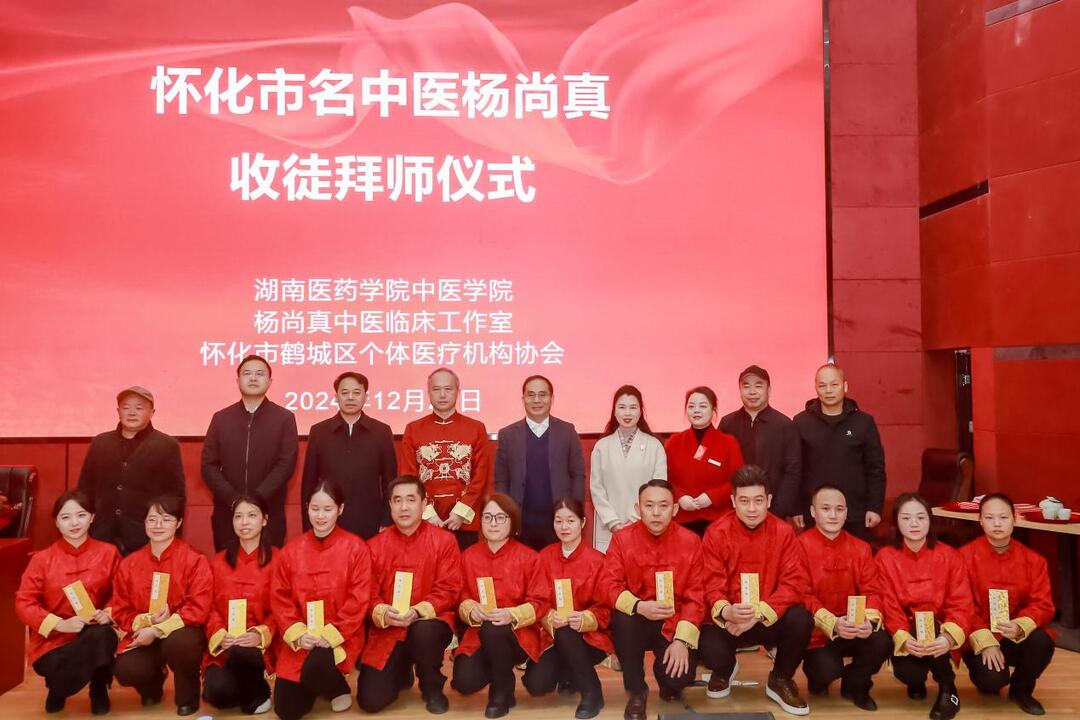 12月21日,在湖南医药学院中医学院举行了一场中医收徒拜师仪式。在仪式现场,怀化市首届名中医、主任医师杨尚真正式接纳了12名弟子,作为其学术思想继承人。旨在”传承岐黄薪火,弘扬中医文化”。湖南医药学院党委书记张在其与怀化市卫生健康委员会主任谭力铭,作为收徒拜师仪式见证人出席并致辞。