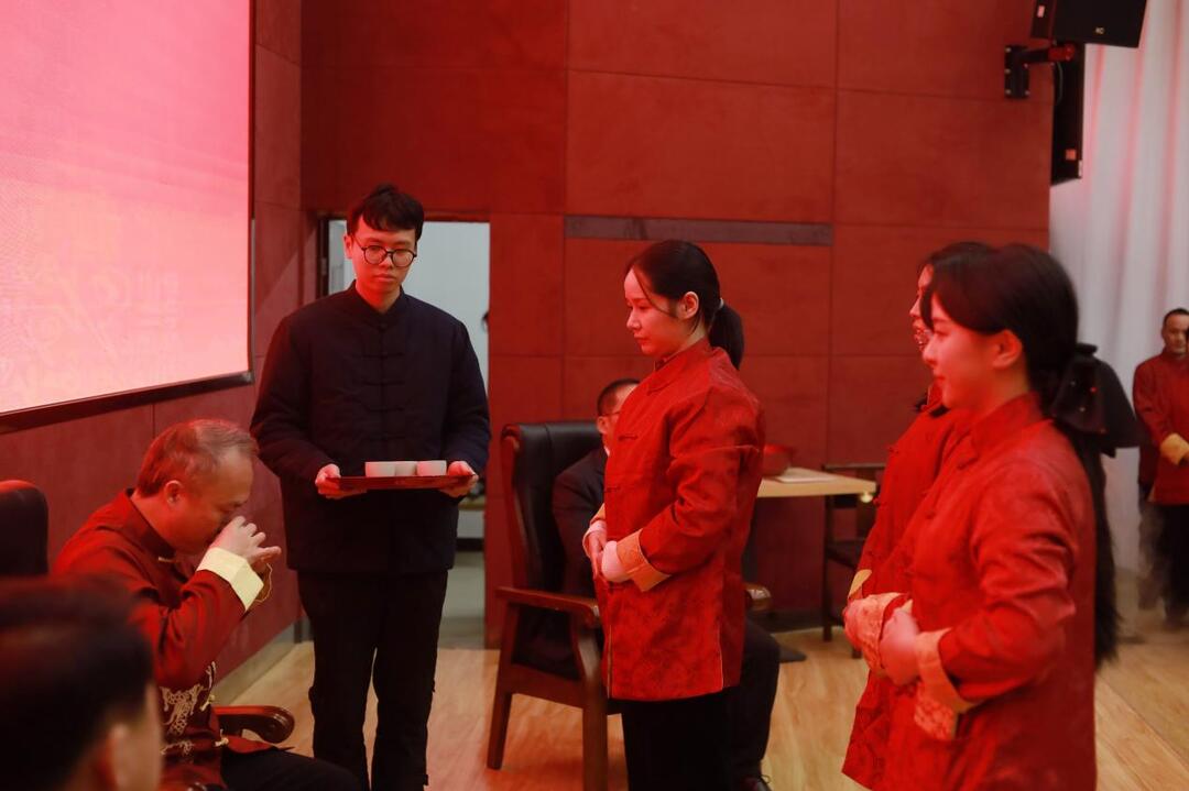 整个仪式严格遵循古代礼仪,弟子们在净手、整肃衣冠后,虔诚地向师父呈递了拜师帖并奉上香茶,以此表达对恩师的敬仰与追随之心,弟子们立志传承师父的学术思想和临床经验,恪守医德,精研医术,为中医事业的发展贡献自己的力量。随后,杨尚真医生向弟子们回礼,并郑重宣读了“二十八字弟子规”,拜师仪式礼成。