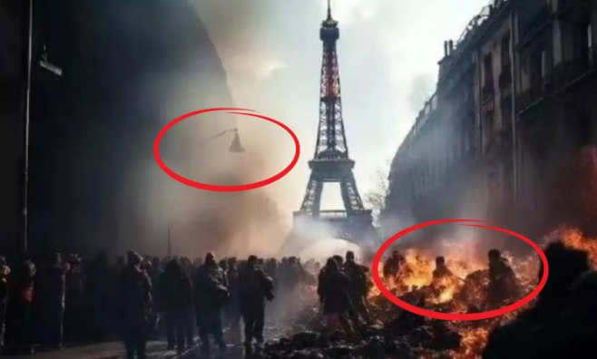 2023年7月,一张图片在社交媒体上被疯传。图片显示埃菲尔铁塔附近街道一片混乱,浓烟弥漫。有网友分享照片并配文说,过去几天在法国目睹了前所未有的暴力事件。