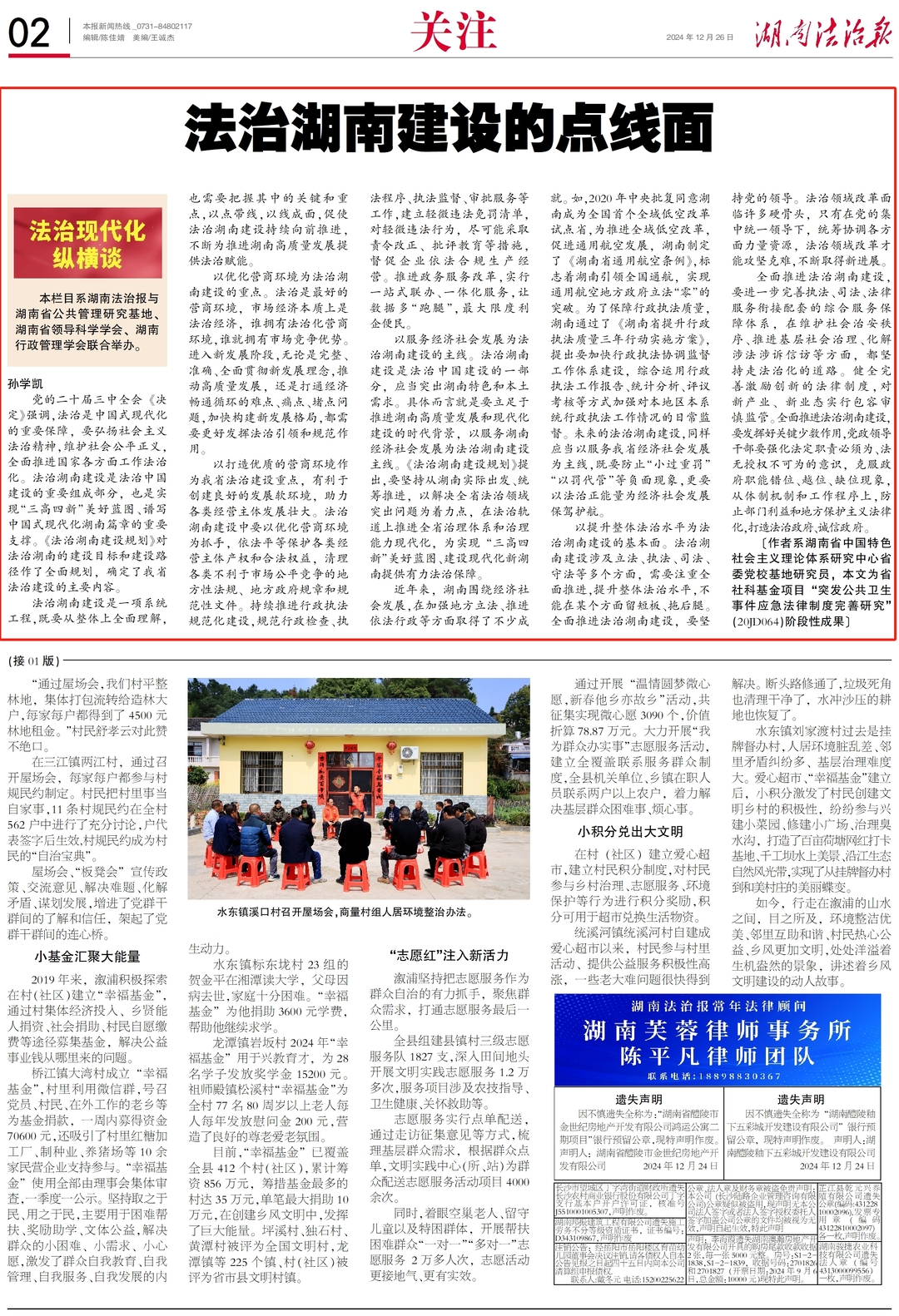 以提升整体法治水平为法治湖南建设的基本面。法治湖南建设涉及立法、执法、司法、守法等多个方面,需要注重全面推进,提升整体法治水平,不能在某个方面留短板、拖后腿。全面推进法治湖南建设,要坚持党的领导。法治领域改革面临许多硬骨头,只有在党的集中统一领导下,统筹协调各方面力量资源,法治领域改革才能攻坚克难,不断取得新进展。