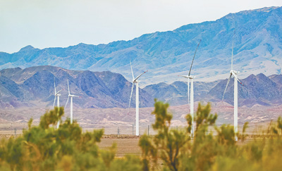 中国企业参与投资建设的哈萨克斯坦谢列克风电场。新华社记者 白雪骐 摄