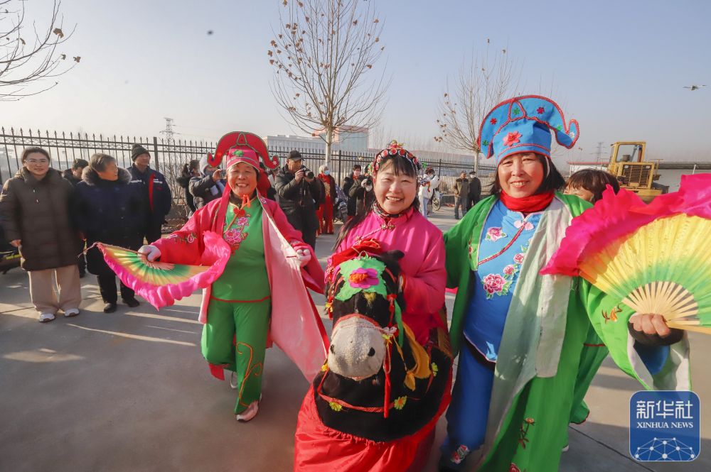 12月30日,河北省遵化市苏家洼镇的民间艺人为村民表演迎新年民俗节目。新华社发(刘满仓摄)