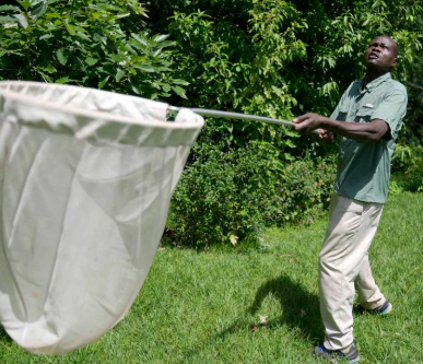 △非洲蝴蝶研究所的助理蝴蝶收藏家埃德加·埃莫琼在肯尼亚内罗毕捕捉蝴蝶。
