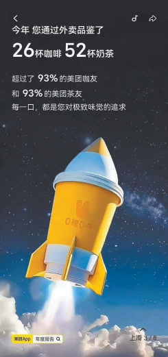 同时,平台也鼓励用户将这份报告分享出去。为了让用户主动分享年度报告,不少APP都在呈现形式上下足了功夫。有外卖平台借助AI生成技术,把用户年度数据融到短剧之中,让用户以第一人称视角过足了瘾。有APP以颁奖的形式呈现用户年度报告。