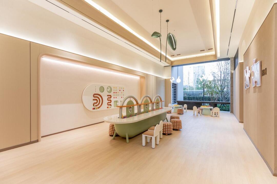 比如有“商务空间”,设置了舒适的沙发座椅,为邻里聊天、商务聚会提供了舒适的交流环境;“童享空间”,是亲子阅读、儿童游乐的趣味空间,可以释放儿童快乐的天性;“运动空间”,设置了乒乓球区、健身房等,业主可以不受天气影响,下楼打卡运动;“休闲空间”,让喜爱书法、品茶的业主也有一方天地。