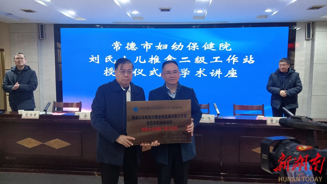 1月7日上午,常德市妇幼保健院举行刘氏小儿推拿二级工作站授牌仪式暨学术讲座,旨在更好地传承和推广刘氏小儿推拿这一非物质文化遗产,提升常德市妇幼保健院中医儿科服务水平,让广大居民在家门口就能享受到高品质的中医健康服务。