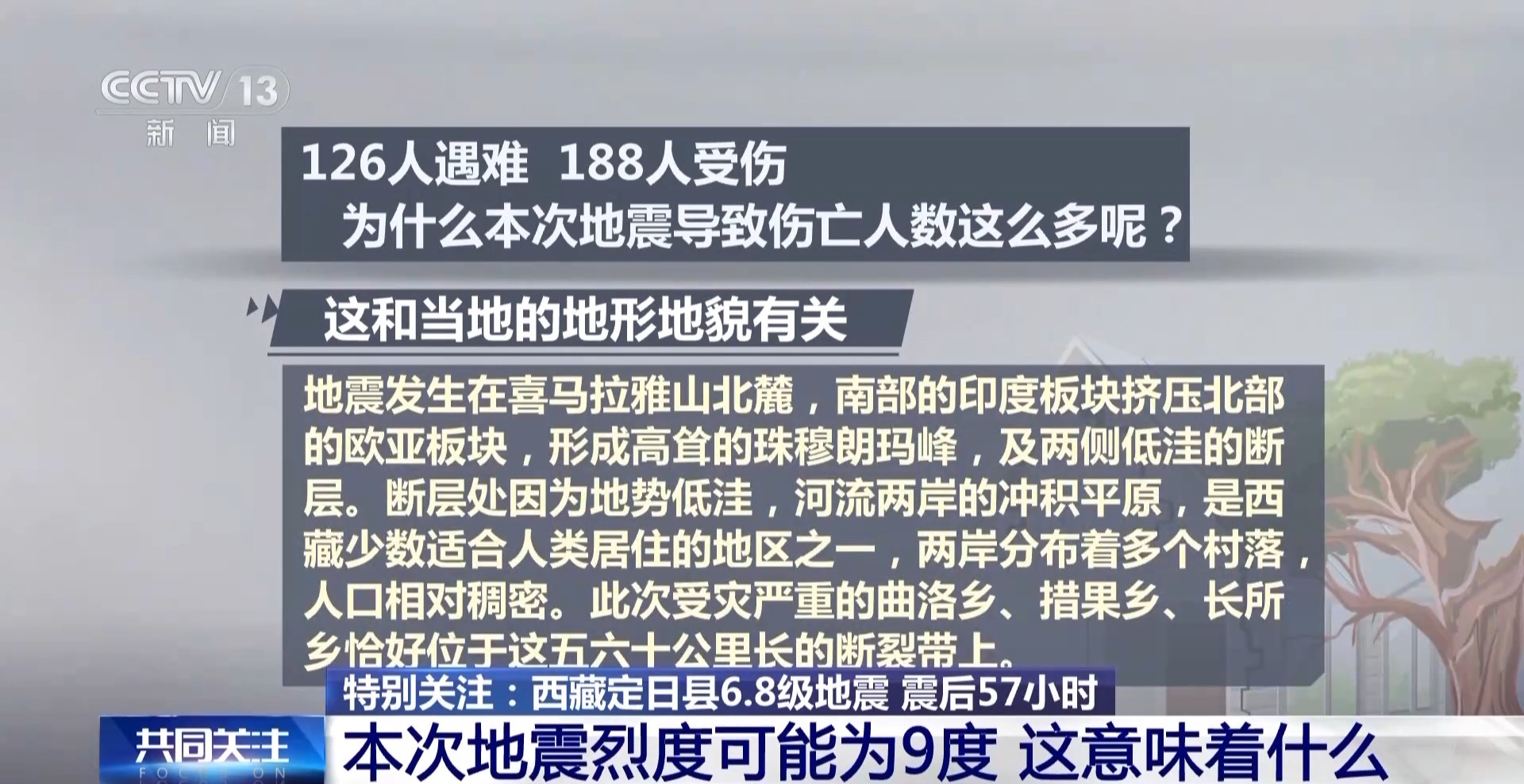 其次,126人遇难,188人受伤,为什么本次地震导致伤亡人数这么多呢?专家表示,这和当地的地形地貌有关。地震发生在喜马拉雅山北麓,南部的印度板块挤压北部的欧亚板块,形成高耸的珠穆朗玛峰及两侧低洼的断层。断层处因为地势低洼,河流两岸的冲积平原,是西藏少数适合人类居住的地区之一,两岸分布着多个村落,人口相对稠密。此次受灾严重的曲洛乡、措果乡、长所乡恰好位于这五六十公里长的断裂带上。