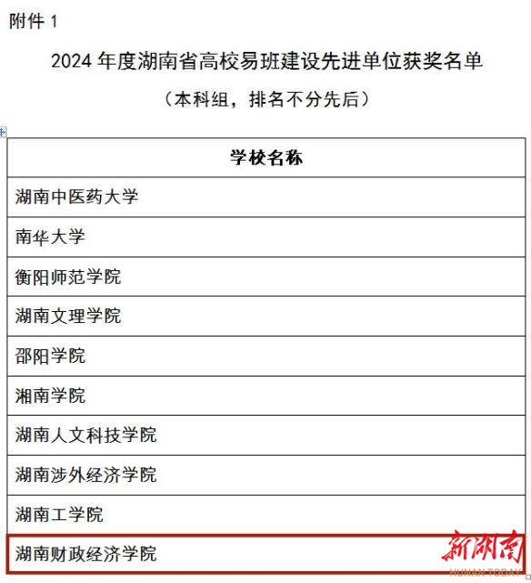 1月8日,湖南省高校易班发展中心发布《关于2024年度湖南省高校易班优秀评选获奖情况的通报》,湖南财政经济学院荣获“湖南省高校易班建设先进单位”,这是学校连续第七年荣获此项荣誉。同时,学校学生工作部思想政治教育科科长周雅荣获“2024年度湖南省高校易班建设优秀指导老师”称号。