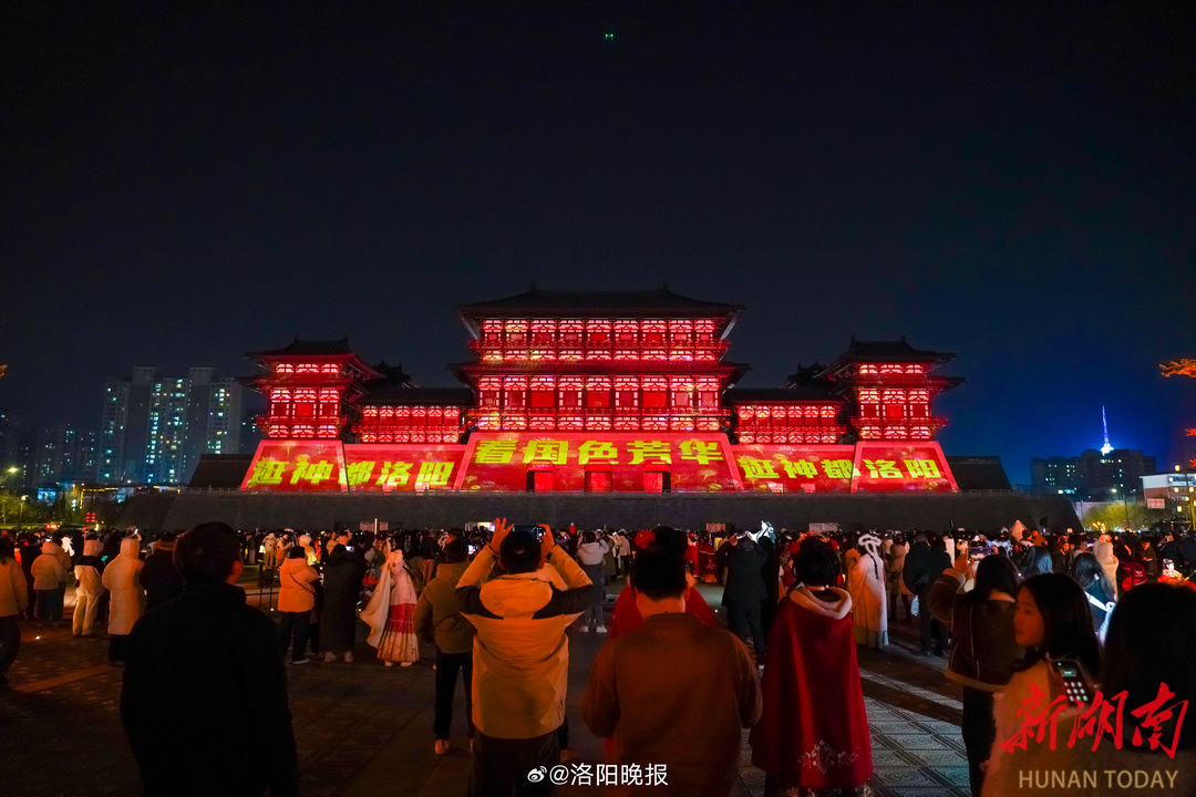 在文旅融合的背景下,该剧也为相关旅游目的地带来了更多关注。作为剧中女主角何惟芳的家乡,1月11日,河南洛阳应天门上演《国色芳华》主题灯光秀,“看国色芳华,逛神都洛阳”的大幅灯光字幕在夜空中璀璨夺目,与古色古香的建筑交相辉映。洛阳这座历史名城的魅力以现代科技的方式重新诠释,吸引了众多游客和市民驻足观赏、拍照留念。