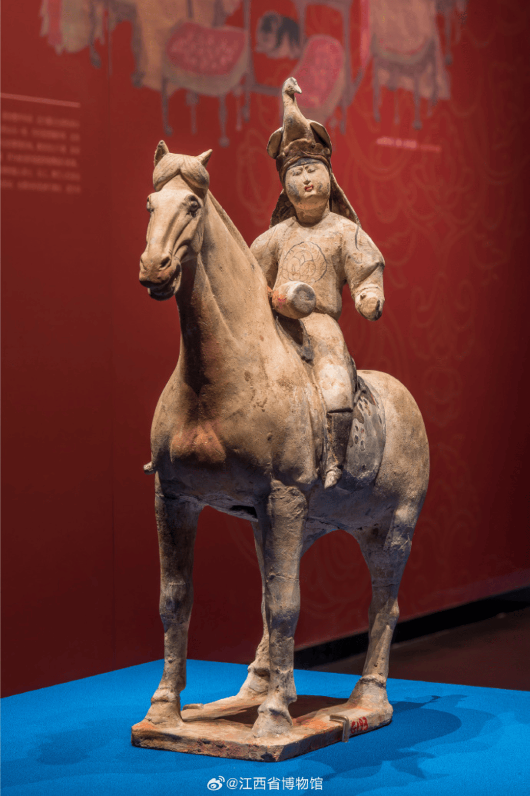 唐孔雀冠击腰鼓女俑在江西省博物馆展出