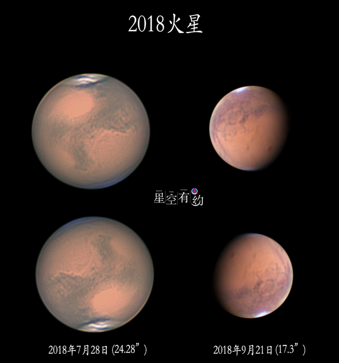 2018年7月和9月在广东深圳罗湖拍摄的火星(拼版)。(黄永雄摄)