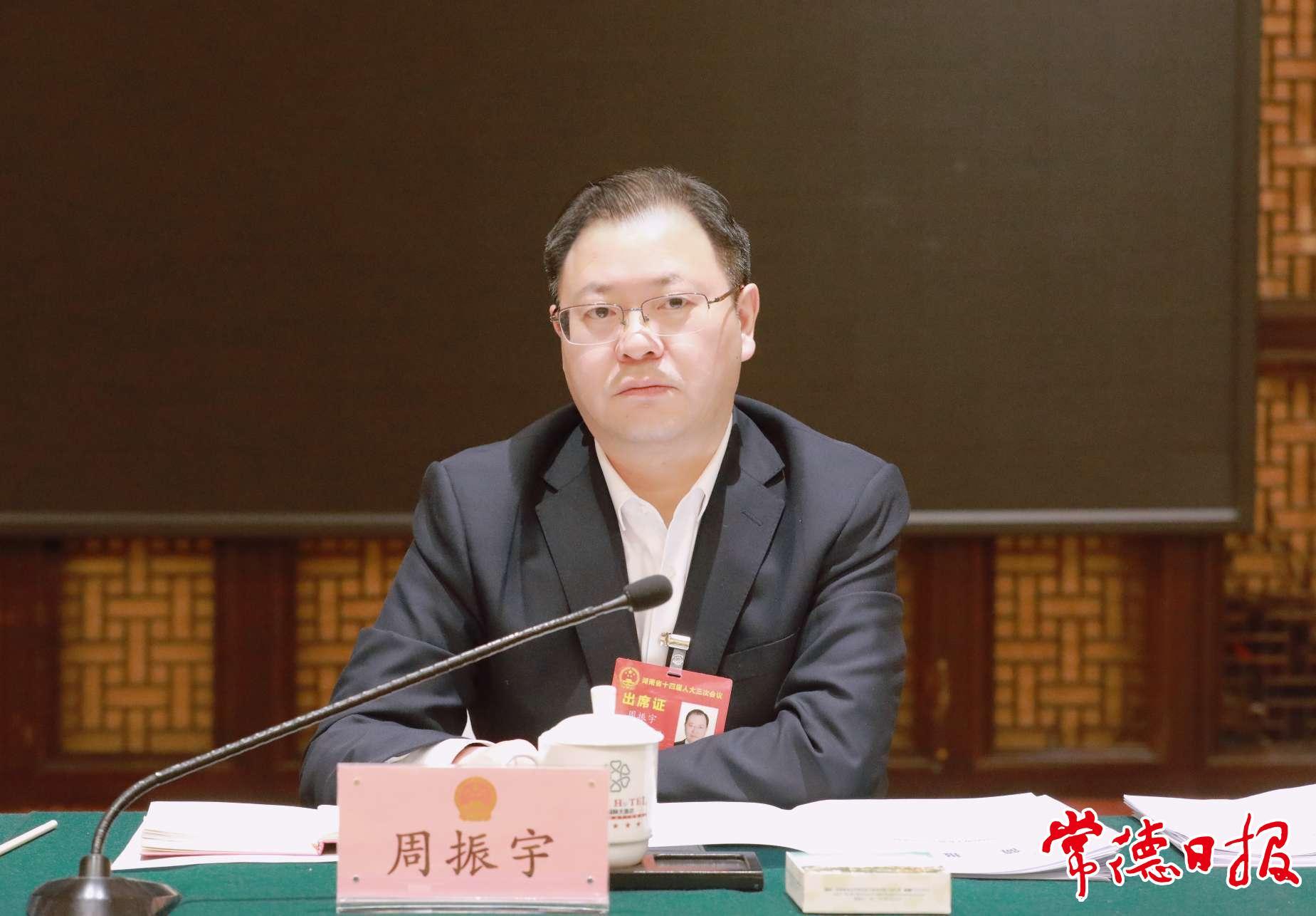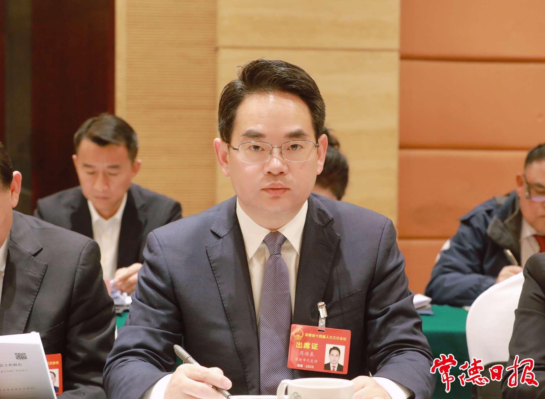 周振宇代表说,报告通篇以习近平新时代中国特色社会主义思想为指导,全面贯彻党的二十大和二十届二中、三中全会精神,深入学习贯彻习近平总书记对湖南工作的重要讲话和指示精神,总结成绩客观实在,部署工作全面具体,是一个站位高、思路清、举措实的好报告。他建议:一是在编制“十五五”规划时,将常德确定为省域副中心城市,推动打造新的经济增长极;二是支持常德重大基础设施建设,加快推进宜常高铁、石张高铁等项目前期工作;三是加快建立粮食产销区省际横向利益补偿机制,加强对粮食主产区的政策扶持和项目支持,加强农机推广服务体系建设,更高水平地保障粮食安全。