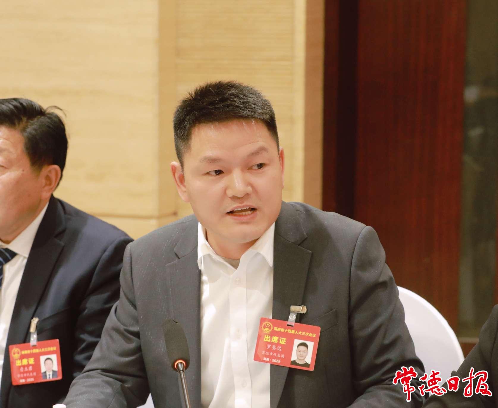 罗毅君代表说,毛伟明省长所作的政府工作报告,站位高远、维护核心,成绩亮眼、提振信心,措施务实、彰显决心,民本情怀、温暖人心,既对标中央精神,又紧贴湖南实际,让人倍感振奋、倍受鼓舞、倍增信心,完全赞同。常德将认真贯彻政府工作报告要求,坚决落实沈晓明书记和毛伟明省长调研常德的讲话和指示要求,锚定“三个高地”、推进“二次创业”,加快推动高质量发展,为奋力谱写中国式现代化湖南篇章作出更大贡献。一是在稳定经济增长上聚焦发力,坚决扛牢“经济大市挑大梁”的责任担当;二是在培强现代产业上聚焦发力,加快构建“4+3”现代化产业体系;三是在深化改革上聚焦发力,形成更多可复制、可推广的“常德经验”;四是在维护大局稳定上聚焦发力,以高水平安全保障高质量发展;五是在全面从严治党上聚焦发力,推动党风政风持续向好。