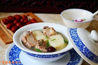 做法:红枣去核切丝;鲜淮山去皮切片;生姜剁蓉;排骨砍块洗净,加入生姜、生抽、花生油、生粉腌制备用。鲜淮山铺于碟上,再铺上排骨,放上红枣丝、葱花,隔水蒸10分钟即可。