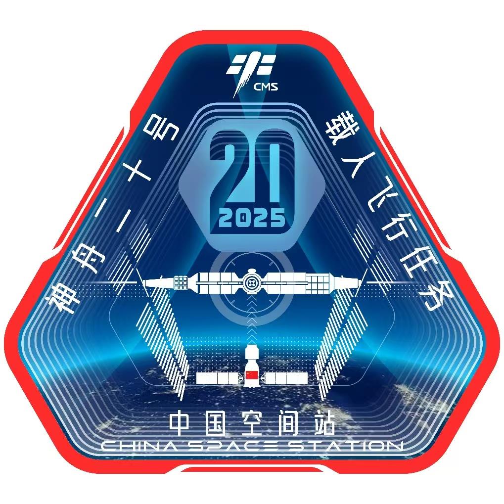 神舟二十号载人飞行任务标识,融合传统与创新,以稳定三角形为基,象征航天人在经验基础上攀登新高峰。