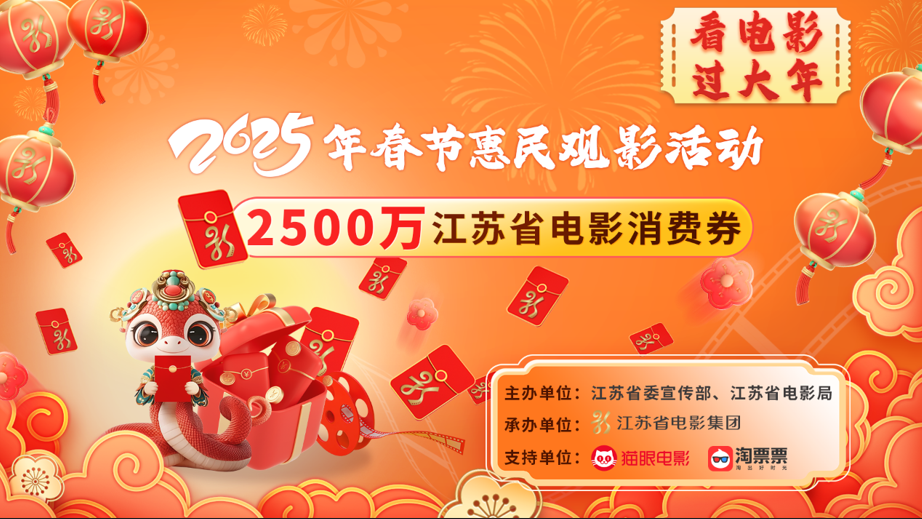 1月17日起,江苏省春节惠民观影活动开始,发放2500万元惠民观影券,为期一个月。其中,通过猫眼平台发放2000万元电影消费券,推出家庭欢乐套票,单人立减20、双人立减40、三人立减60优惠,通过淘票票平台发放500万元单人立减20元消费券。加大补贴力度,在春节期间吸引更多观众走进影院。